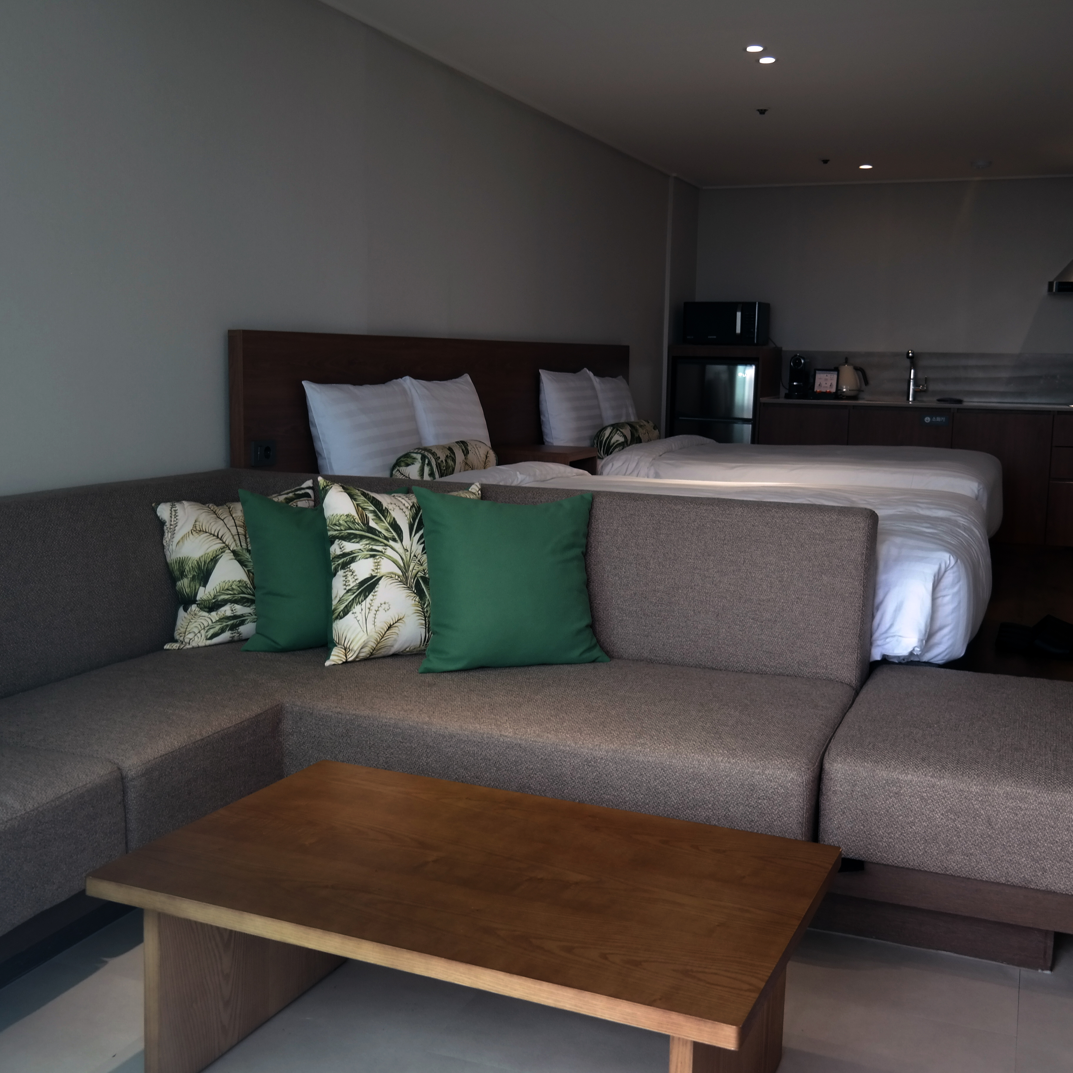 저도 어린 시절에 이곳(그때는 한국콘도)에 왔던 기억이 있어서 기분이 묘했습니다. 마치 와이프를 데리고 부곡하와이를 갔을 때와 비슷한 기분이었죠. 부곡하와이에 갔을 때와 다른 게 있다면 변신에 성공하지 못했던 부곡하와이와 달리 켄싱턴리조트 제주중문은 정말 완전히 새로운 모습이었다는 것. 제주표 오션뷰를 즐기는 데 최적화한 객실은 저와 같은 X세대뿐만 아니라 민지들의 취향도 저격하기에 부족함이 없어 보였습니다.